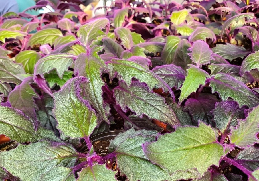 · Опушение: листья, стебли и даже цветоносы густо покрыты фиолетово-пурпурными волосками, придающими растению бархатистый вид и характерную окраску . Молодые листья имеют наиболее яркий оттенок .