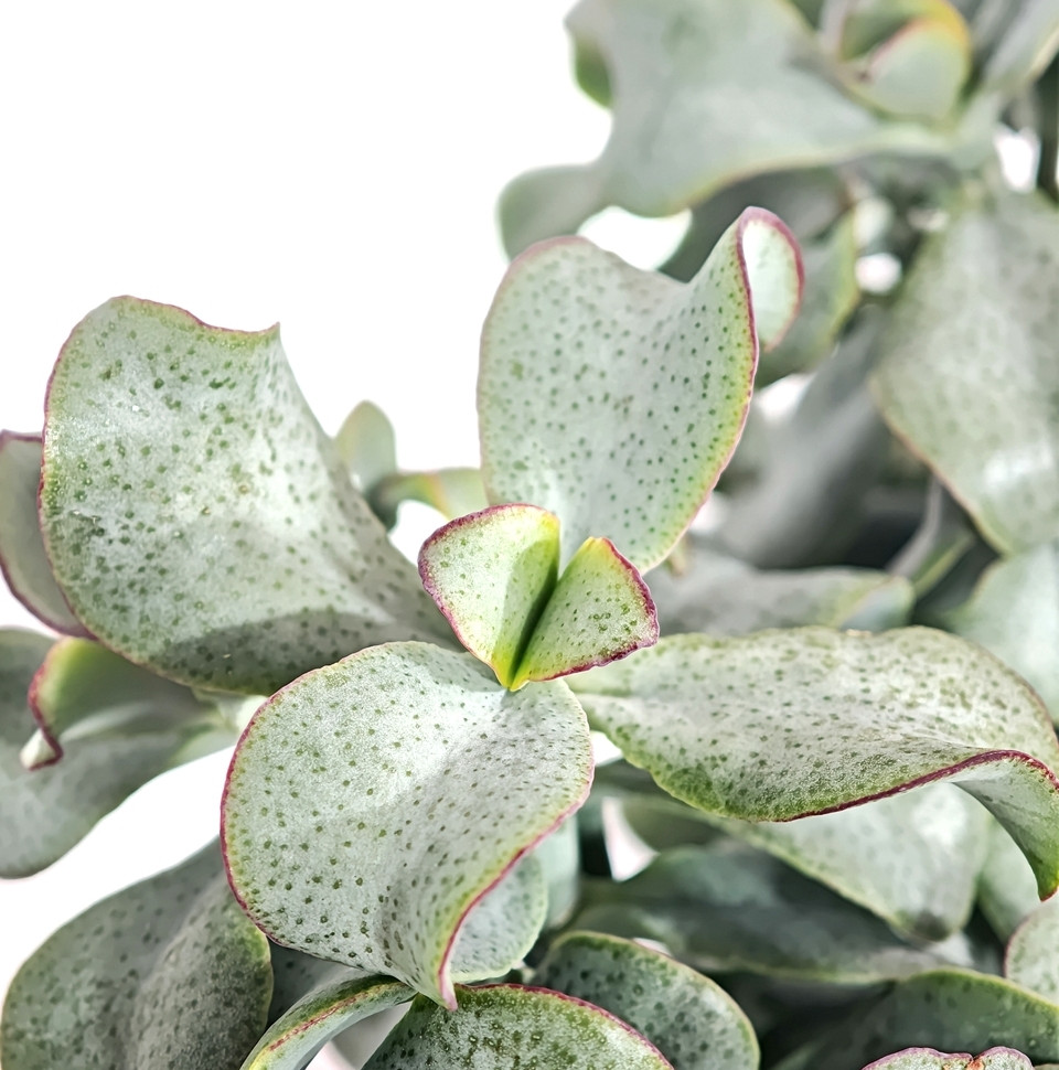 - Листья: очередные, овальные или широкоэллиптические, мясистые, глянцевые, длиной 2–6,5 см, шириной 1–4 см. Окраска — светло-зеленая или ярко-зеленая, иногда с мелкими черными точечными железками. Стебли и черешки могут приобретать розовый или красный оттенок при ярком освещении.